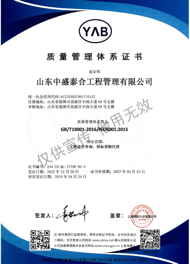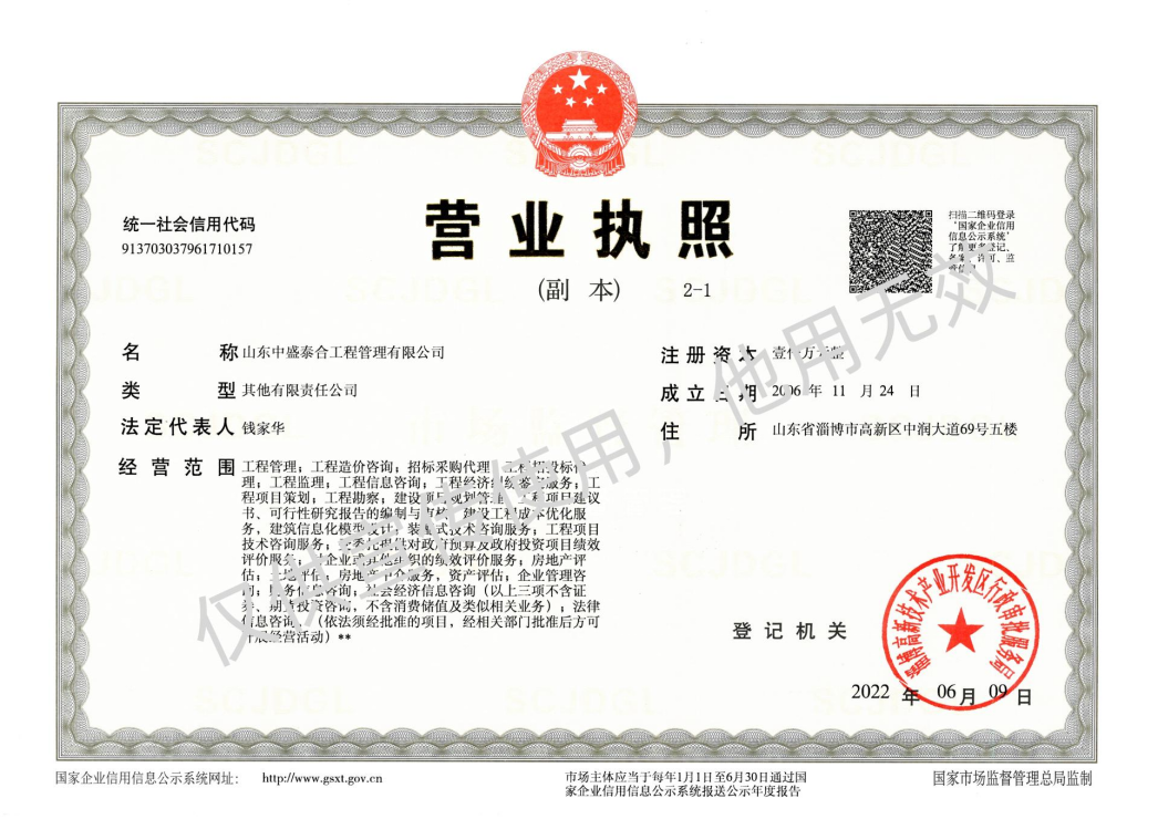 山東中盛泰合工程管理有限公司成立于2006年,經過多年發(fā)展與積累已成為山東省及區域內最具活力的工程造價專業咨詢機構與綜合性建設項目管理咨詢機構之一。公司是由國家住建部批準的全國工程造價咨詢甲級資質企業,山東省住建廳核定的山東省工程造價咨詢A級資信企業,中國建設工程造價管理協會會員單位,山東省工程建設標準造價協會理事單位、淄博市建設工程招標投標和標準造價協會副會長單位、山東省全過程工程咨詢服務試點企業。公司已通過ISO9001國際質量體系認證、ISO14001國際環(huán)境管理體系認證、ISO45001國際職業健康與安全管理體系認證,多年連續(xù)獲評省市行業先進單位、淄博市工程造價咨詢十佳企業,造價咨詢成果優(yōu)秀企業;公司為山東省施工全過程造價控制規(guī)則等行業標準規(guī)范編撰單位,省建筑工程消耗量定額學習匯編資料編制單位等……